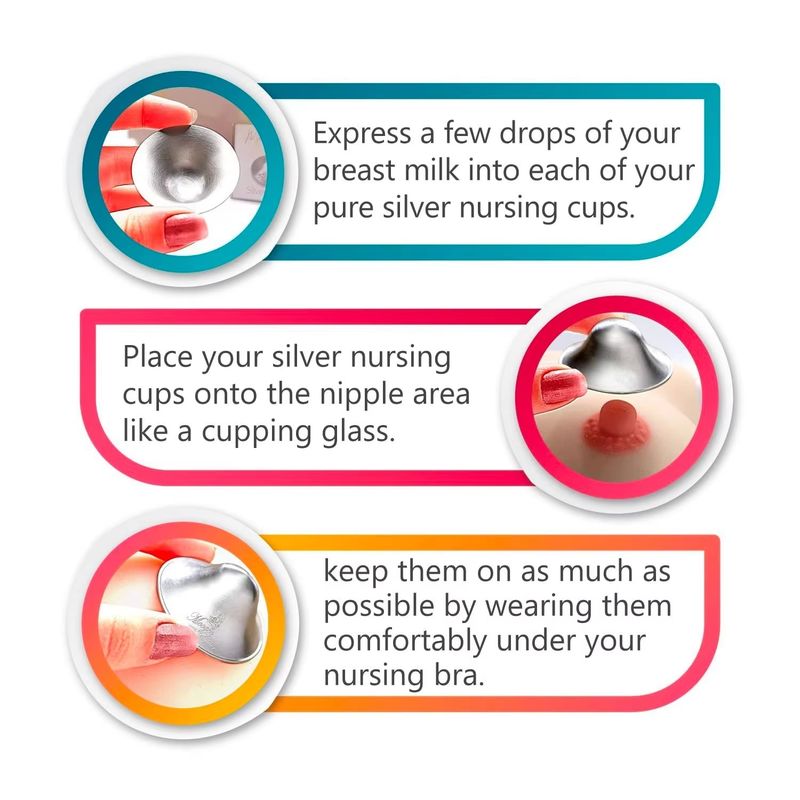 مصنوعة منفضة إسترليني نقية 999 أو فضة إسترليني عالية الجودة 925, هذه الأكواب المخصصة للتمريض هي الحل الأصلي المثبت سريريًا لتهدئة وعلاج الحلمات المتشققة والمتألمة أثناء الرضاعة الطبيعية. على عكس الضمادات التي تستخدم لمرة واحدة أو الدروع المصنوعة من السيليكون، فإنها تستغل الفضة الطبيعيةالخصائص المضادة للميكروبات والمضادة للالتهابات والشفائيةلتوفير راحة فورية وتسريع الشفاء. قابلة لإعادة الاستخدام وصديقة للبيئة ومصممة لتوفير الراحة على المدى الطويل، وهي ضرورية في مجموعة أساسيات كل أم مرضعة.